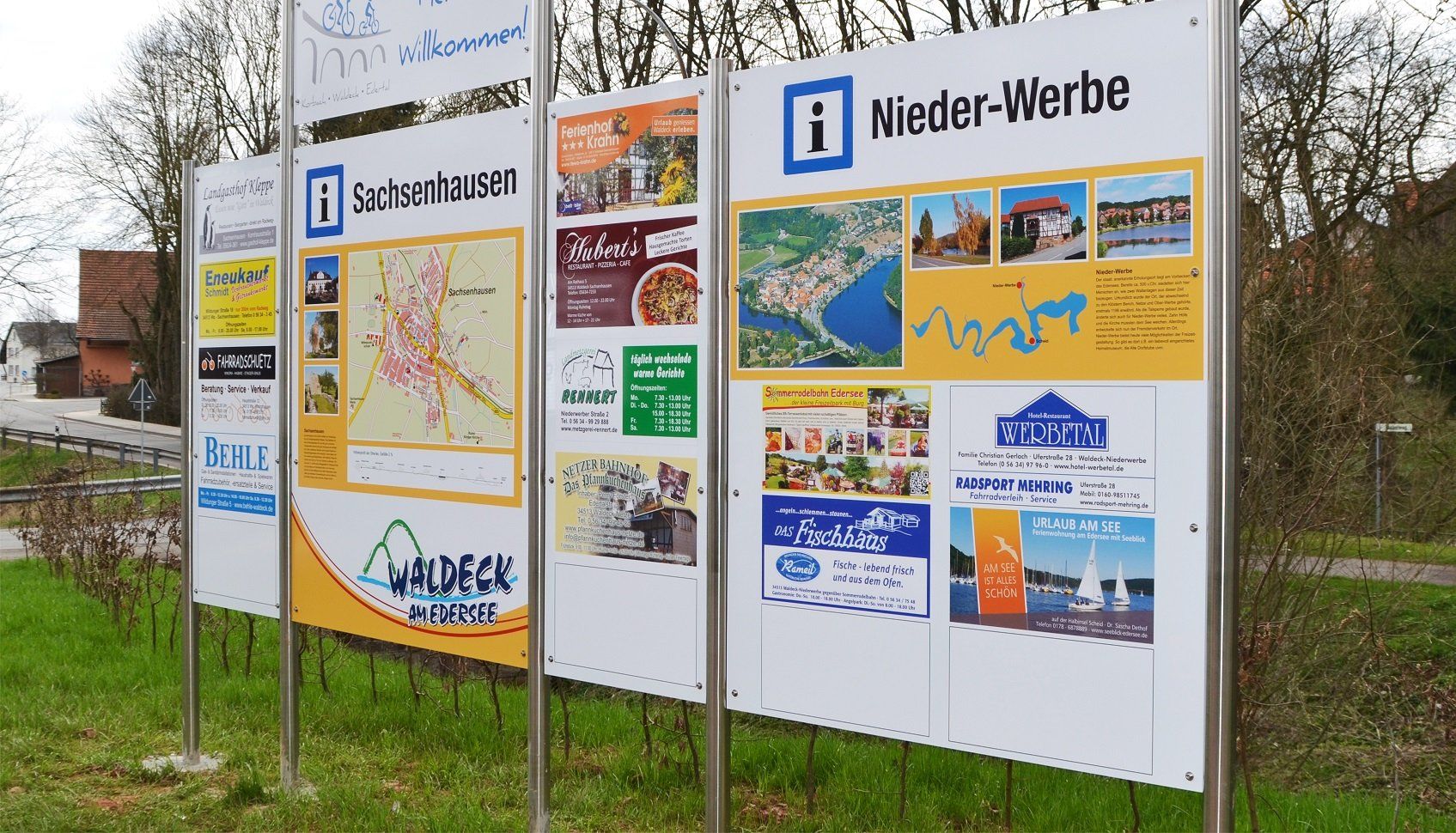 Vom Tür-, Bau- oder Werbeschild über Schaufensterbeschriftung bis zur LED-beleuchteten Fassadengestaltung mit Einzelbuchstaben liefern wir Ihnen die komplette Palette der Innen- und Aussenwerbung.